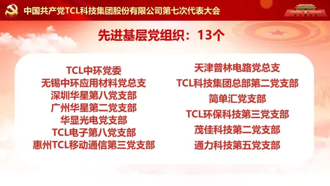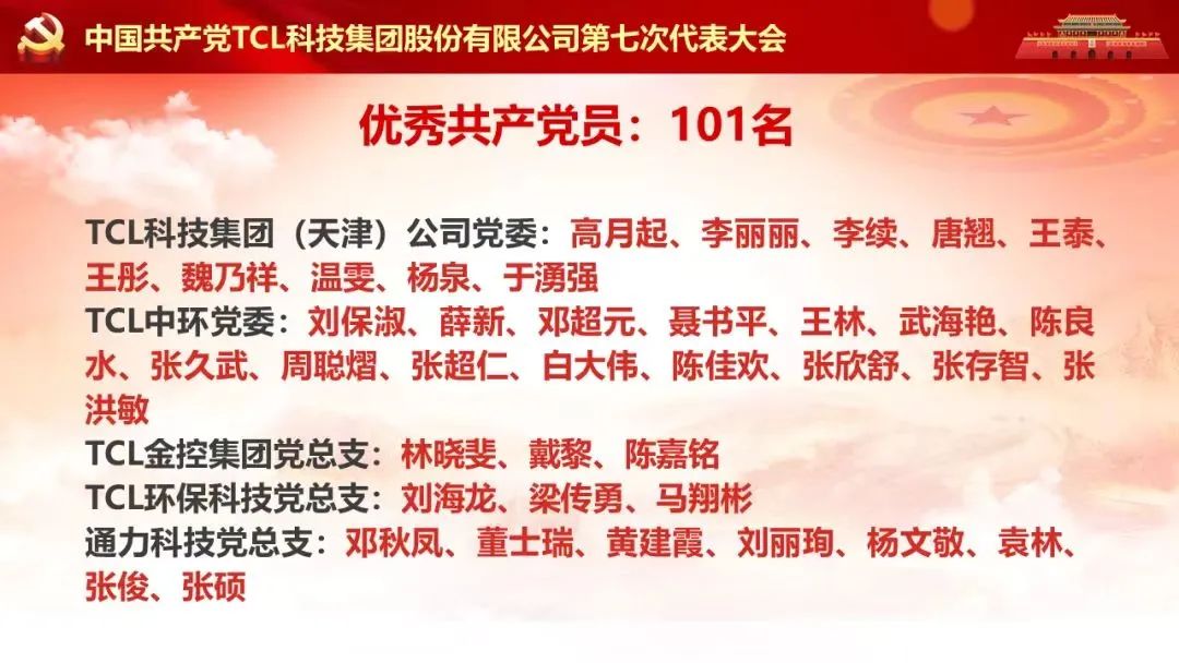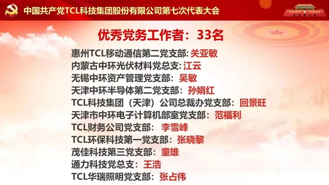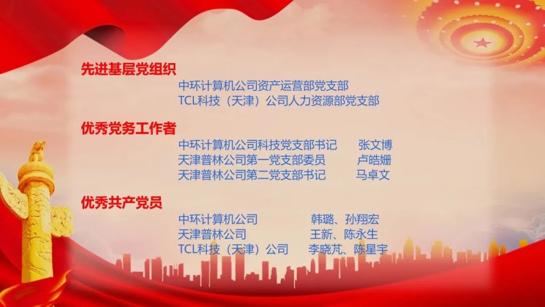 為慶祝七一,表彰先進,經TCL科技(天津)公司黨委研究,對先進基層黨組織、優(yōu)秀黨務工者和優(yōu)秀共產黨員予以表彰。